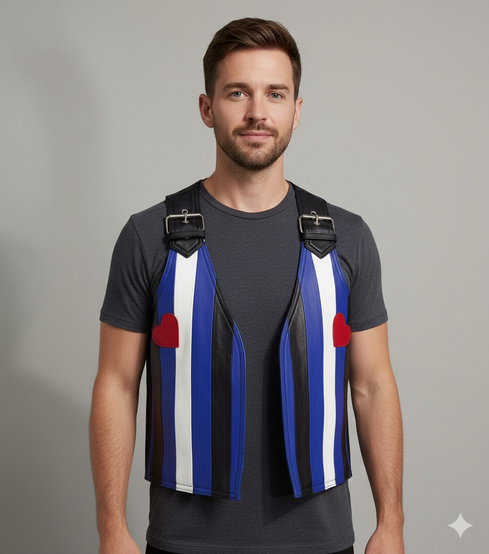 A “leather bar vest” is a term that could refer to a few different styles or contexts, but it generally implies a leather vest worn in a bar setting, often with a specific aesthetic or subcultural association.Â