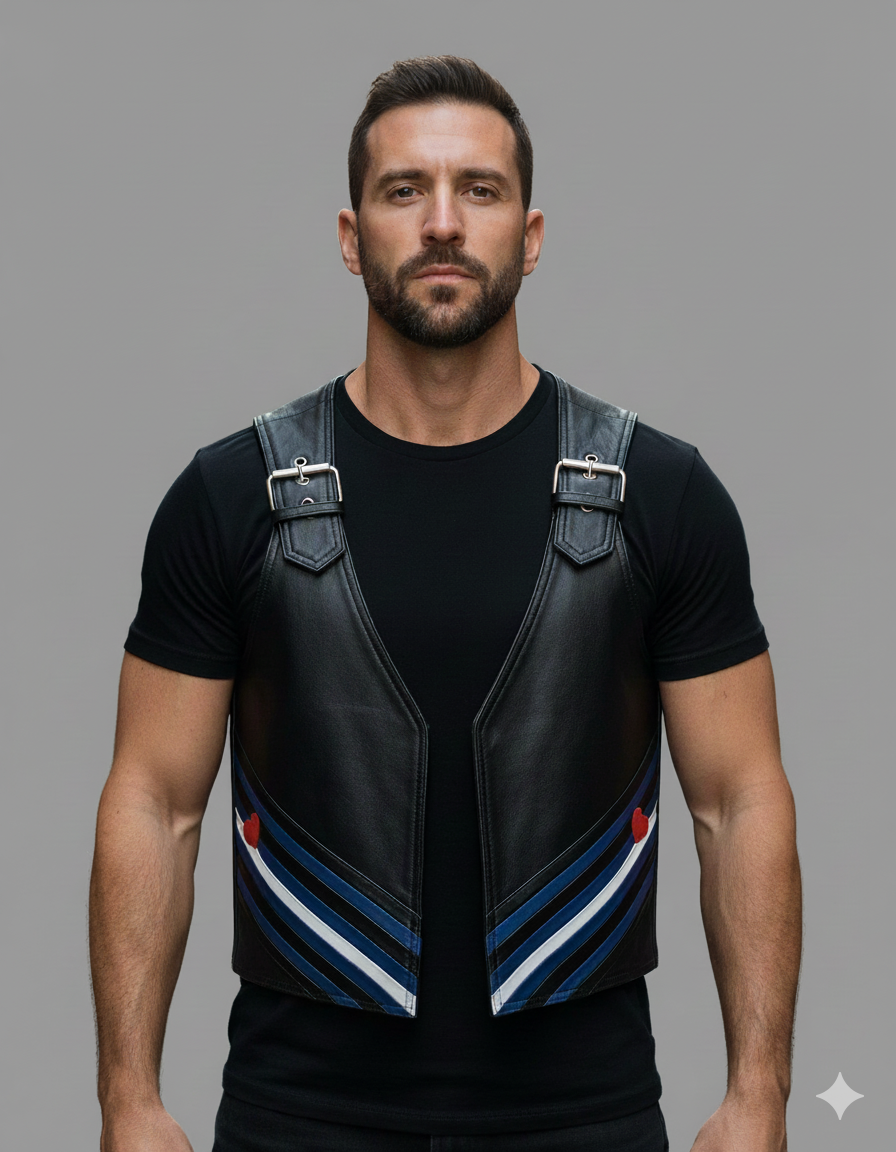 A “leather bar vest” is a term that could refer to a few different styles or contexts, but it generally implies a leather vest worn in a bar setting, often with a specific aesthetic or subcultural association.Â