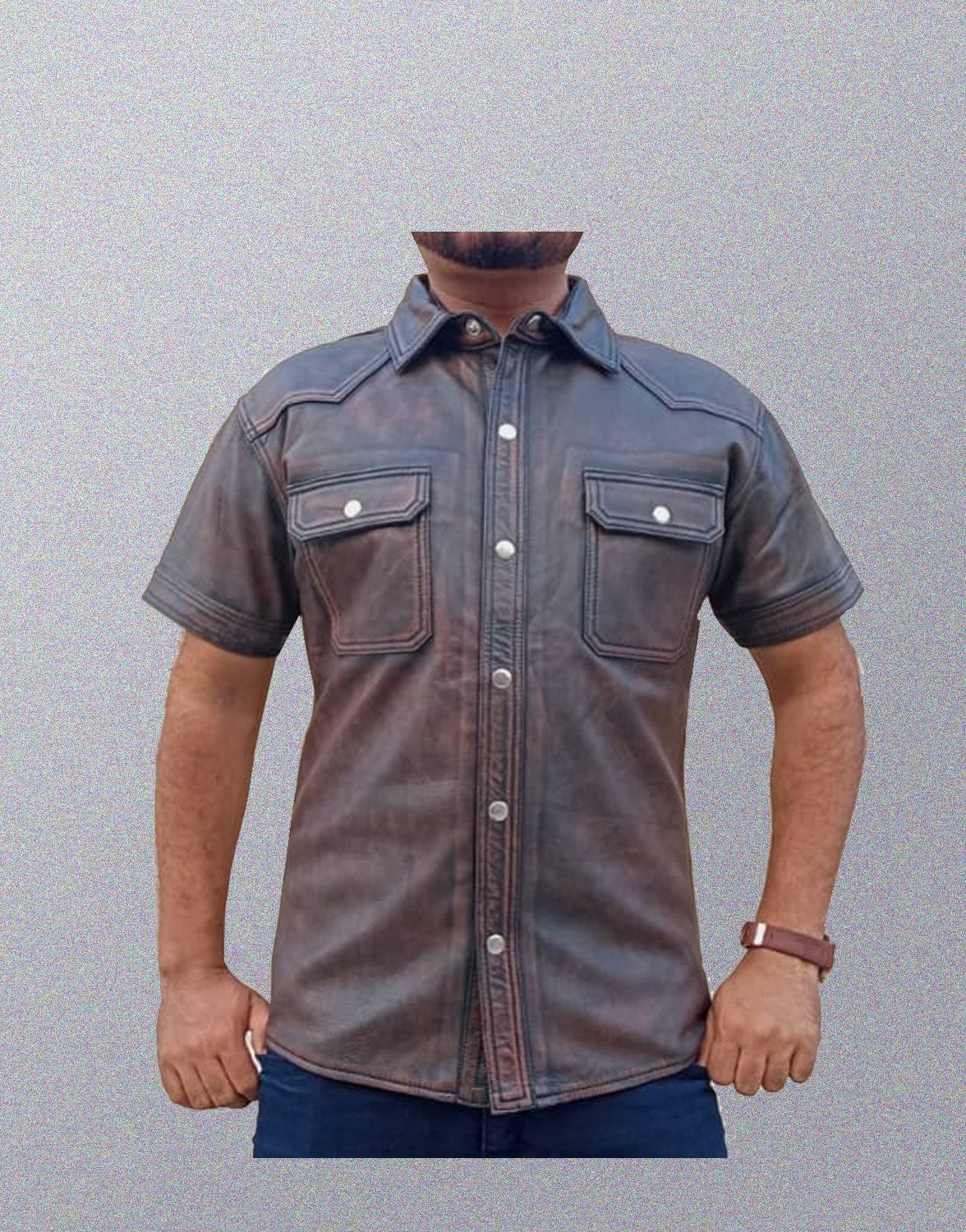 LEATHER VINTAGE STYLE POLICE SHIRT.