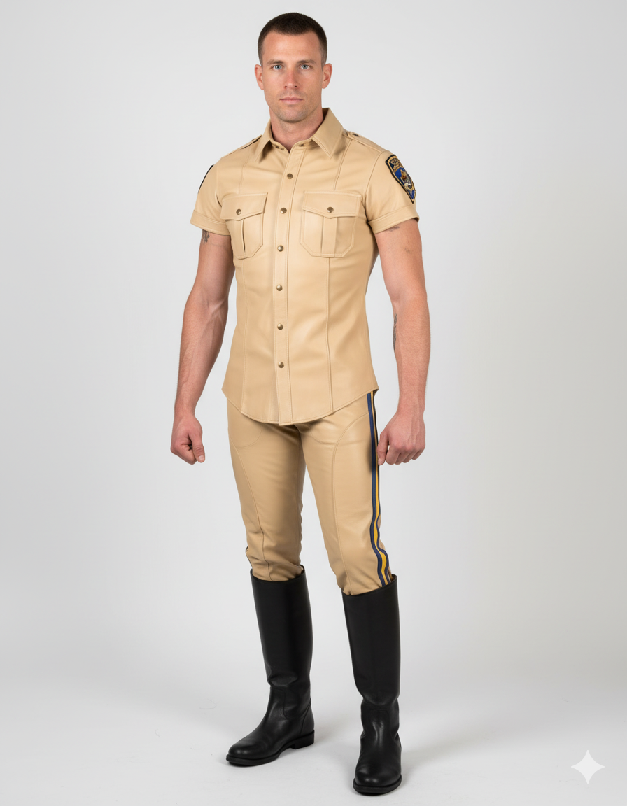 Leather California Highway Patrol (CHP) uniforms, often styled as breeches or shirts, are specialized garments crafted from heavy-duty cowhide or horsehide leather.