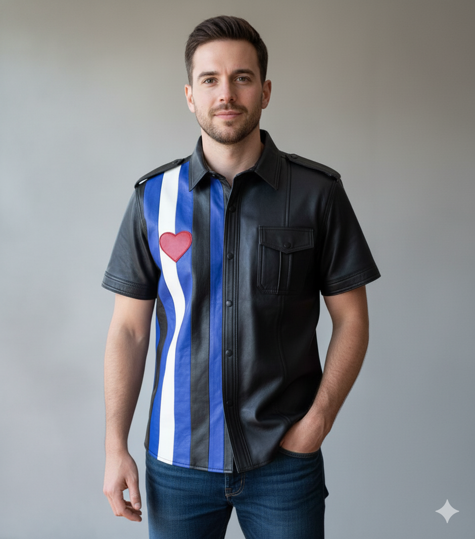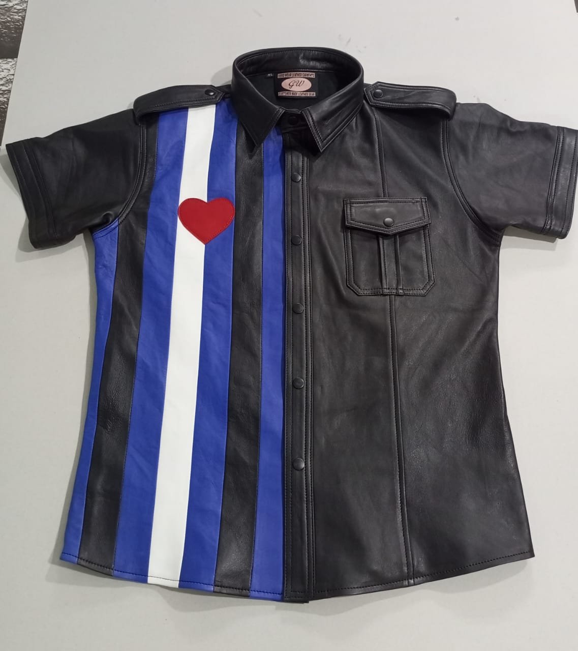 The leather Heart flag shirt is a specific piece of clothing that incorporates the Heart flag..