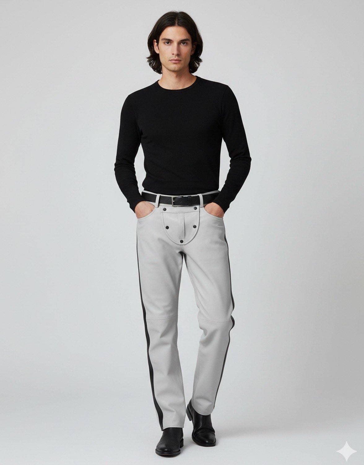 LEATHER QUITED PANT WITH BLACK CONTRAST.