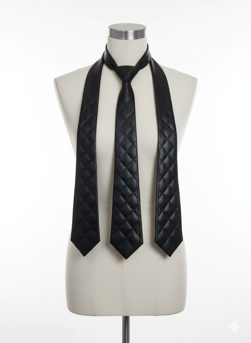 A leather tie is a necktie made from genuine leather, offering a distinct and often more rugged or edgy alternative to traditional silk or fabric ties.